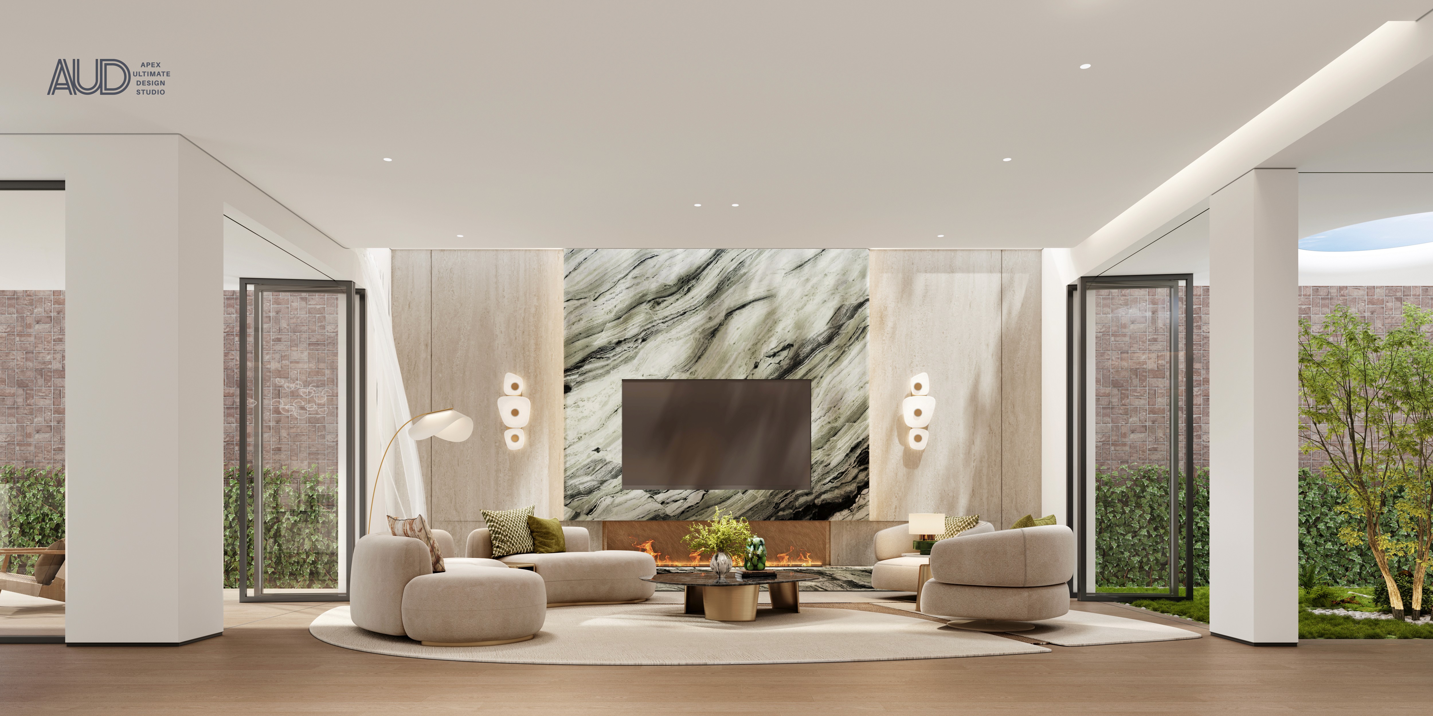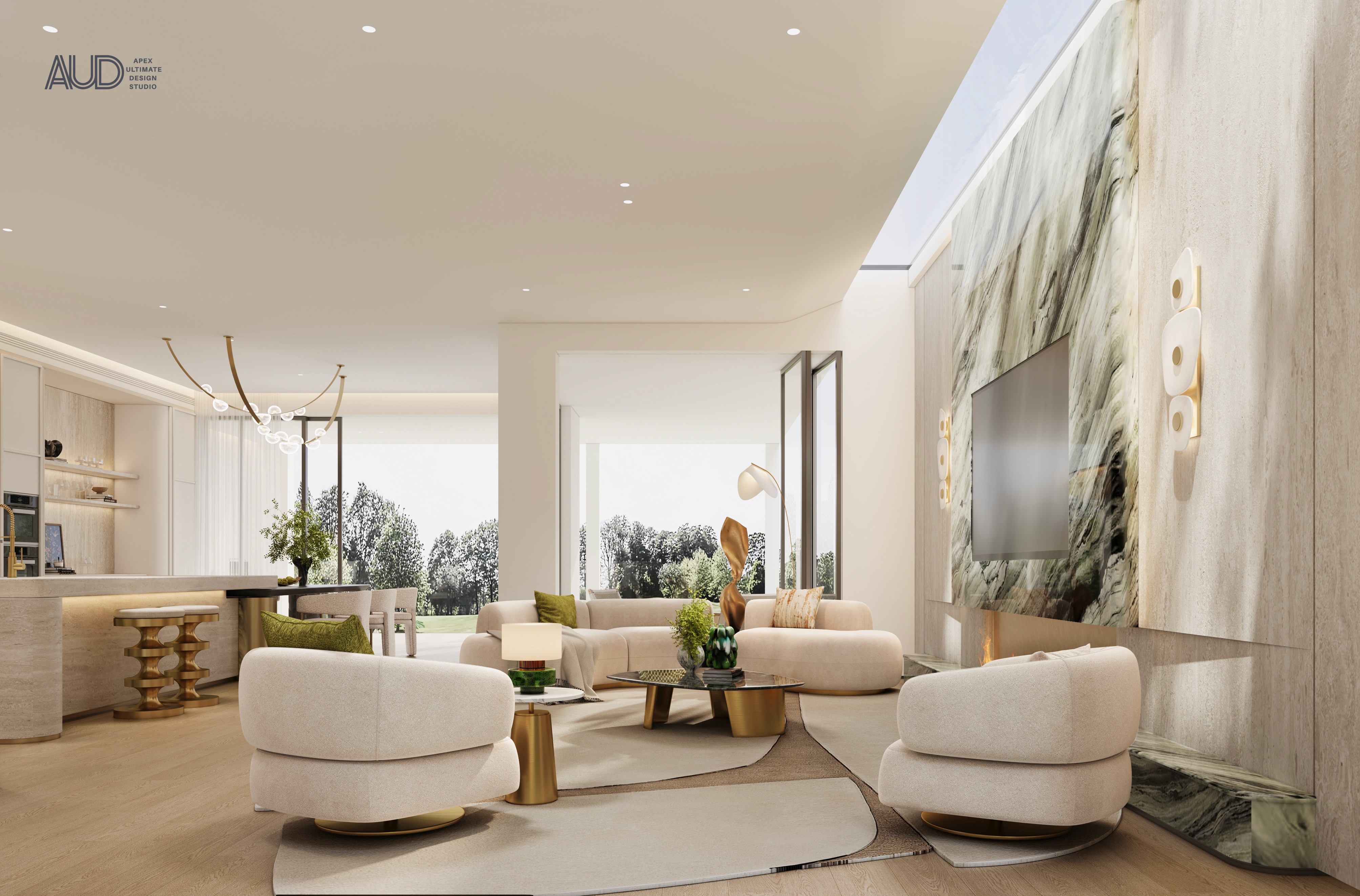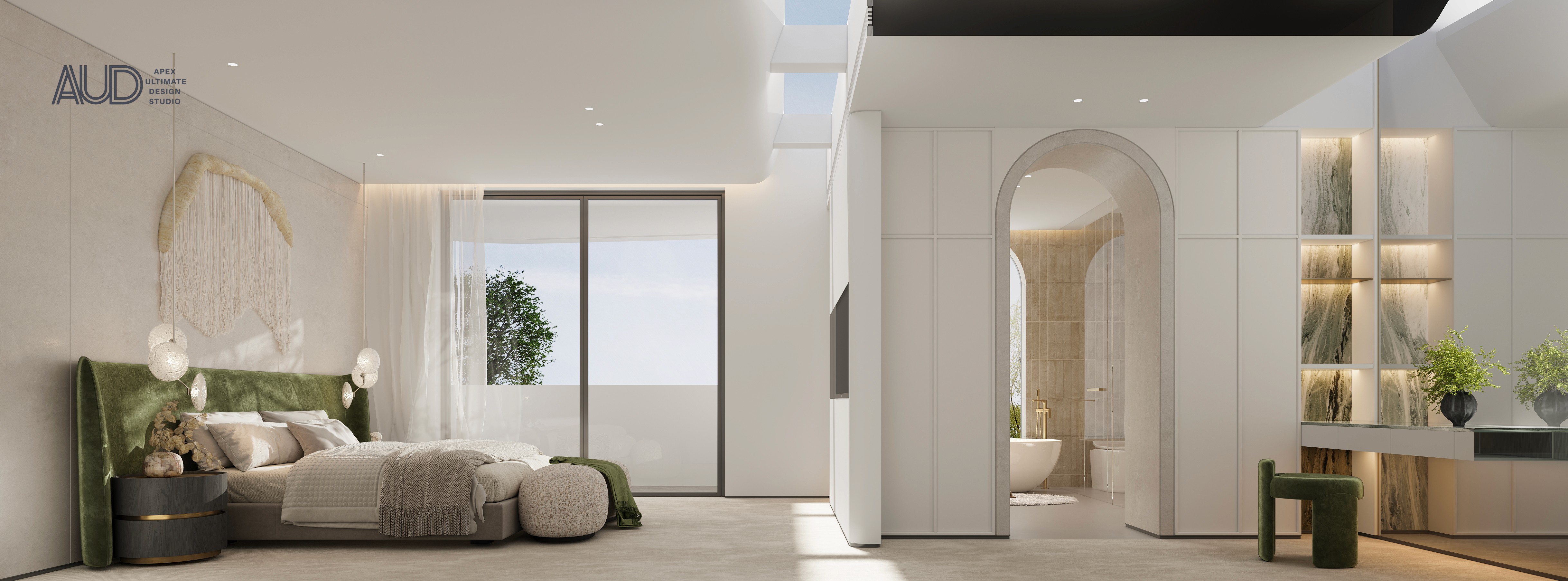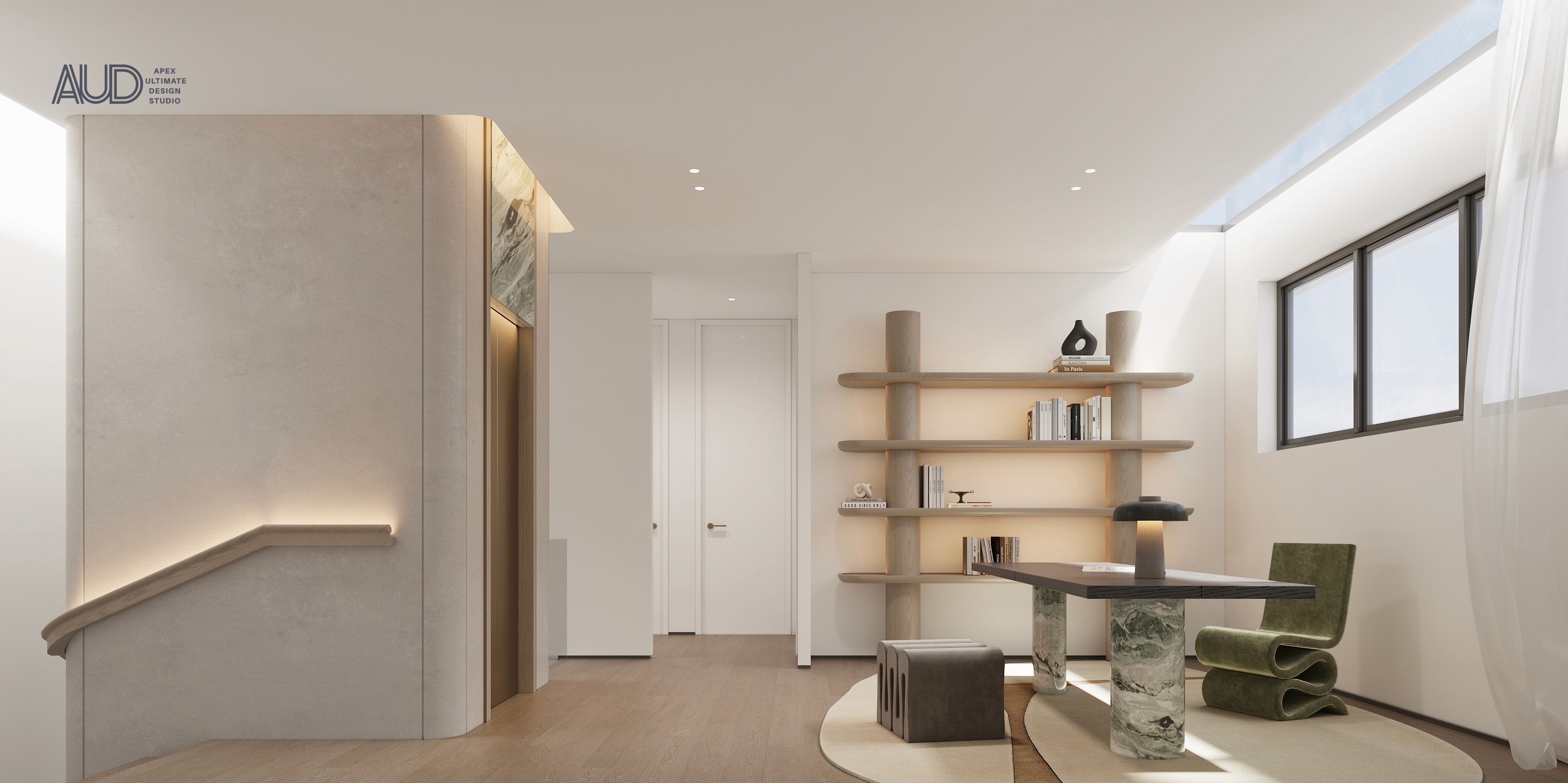 A collector couple envisioned an elegant residence with gallery-like presence and ceremonial arrival.